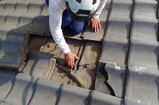 - 台風や地震で屋根瓦がずれたり落ちたりしないように、補強工事も行っております。