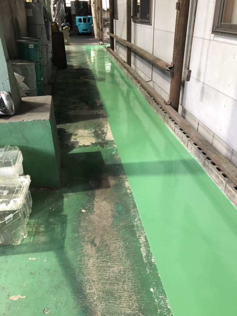 今回は東淀川区の工場で、床エポキシ樹脂塗装を行いました。